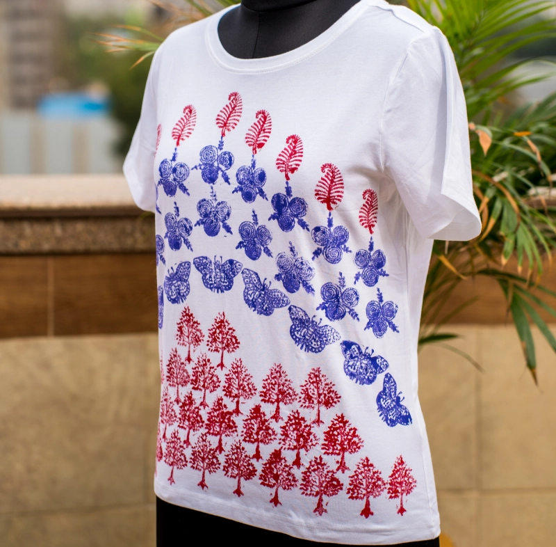 Tee-27 A versatile everyday t-shirt designed for comfort and style. Perfect as a standalone piece or for layering. Artist: Ananya Hingorani INSPIRATION: Nature • Transformation • Harmony Category: Block Print Enquiry Now
